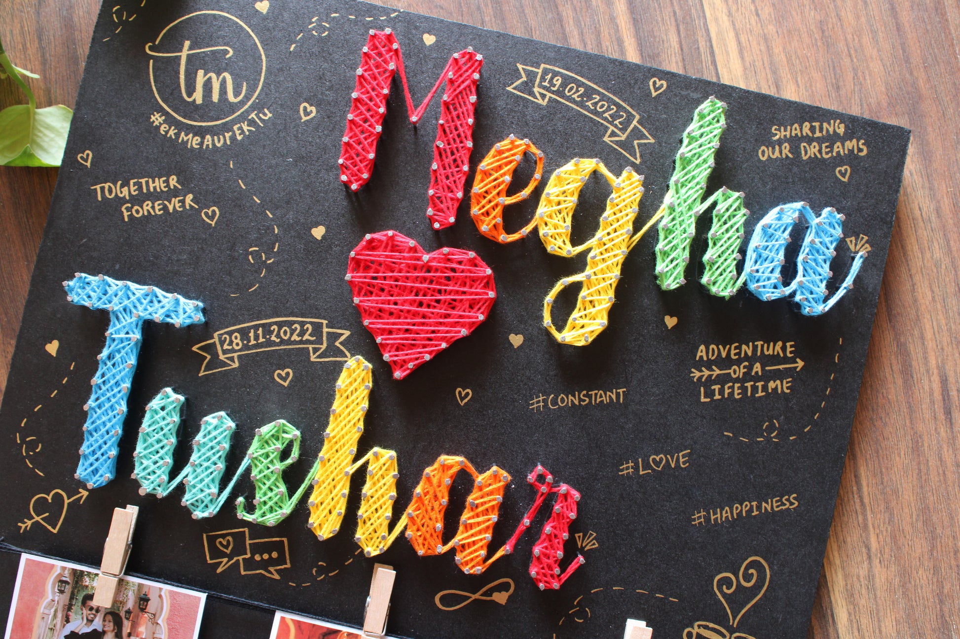 ⢠Handmade on a sturdy MDF base, this string art nameboard adds a creative touch to your space.